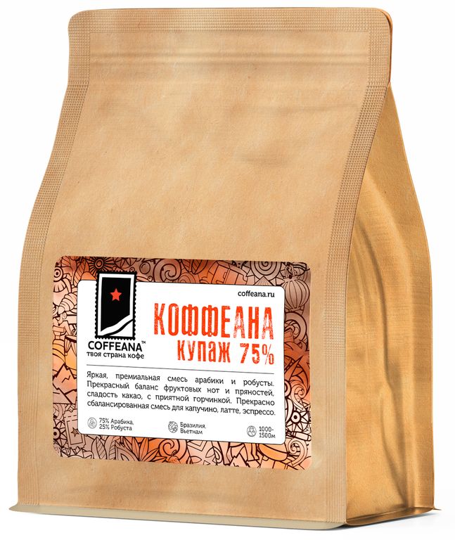 Свежеобжаренный кофе КОФФЕАНА (профессиональная смесь 75% арабика, 25% робуста) / COFFEANA 75% arabica, 25% robusta